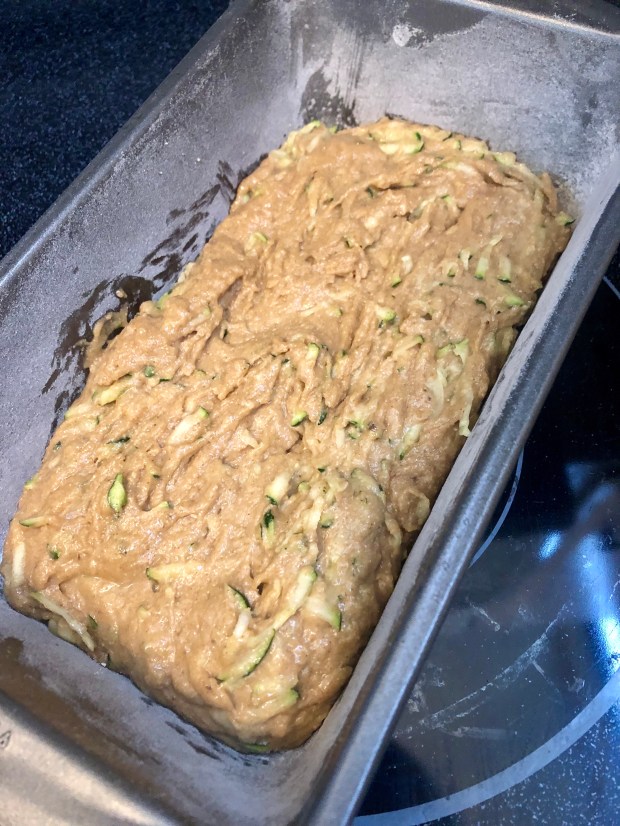 Preheat oven to 350 degrees F. Grease a 8×4-inch loaf pan and coat with flour and set aside.