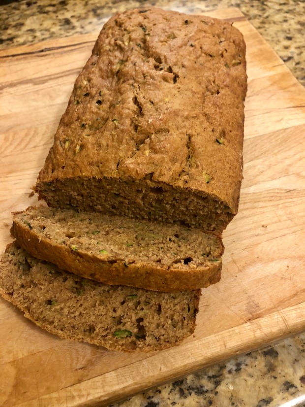 Pour the batter into prepared loaf pan. Bake until a toothpick inserted into the center comes out clean, 55-60 minutes. Cool on a wire rack for 15 minutes, then remove the bread from the pan and place on wire rack to cool completely before slicing.