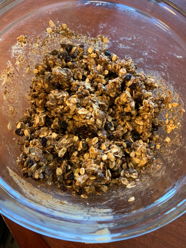 I feel like this is too easy here. Put everything in a medium bowl and mix with a large spoon or hands. Once mixed together, refrigerate for 30 minutes and form into 1 inch bites. I didn’t feel like waiting so I made them right away, just a little stickier.