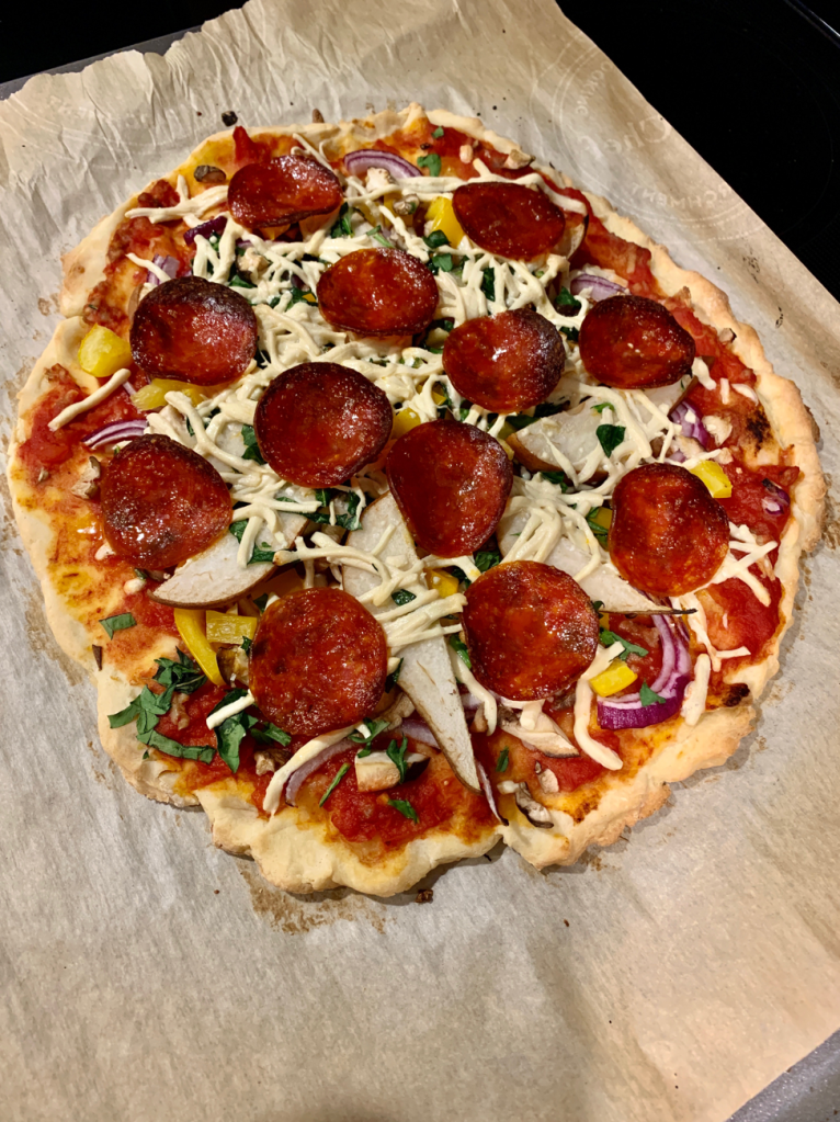 - 2oz Organic Pepperoni or Chicken Sausage (I had pepperoni so I used that)