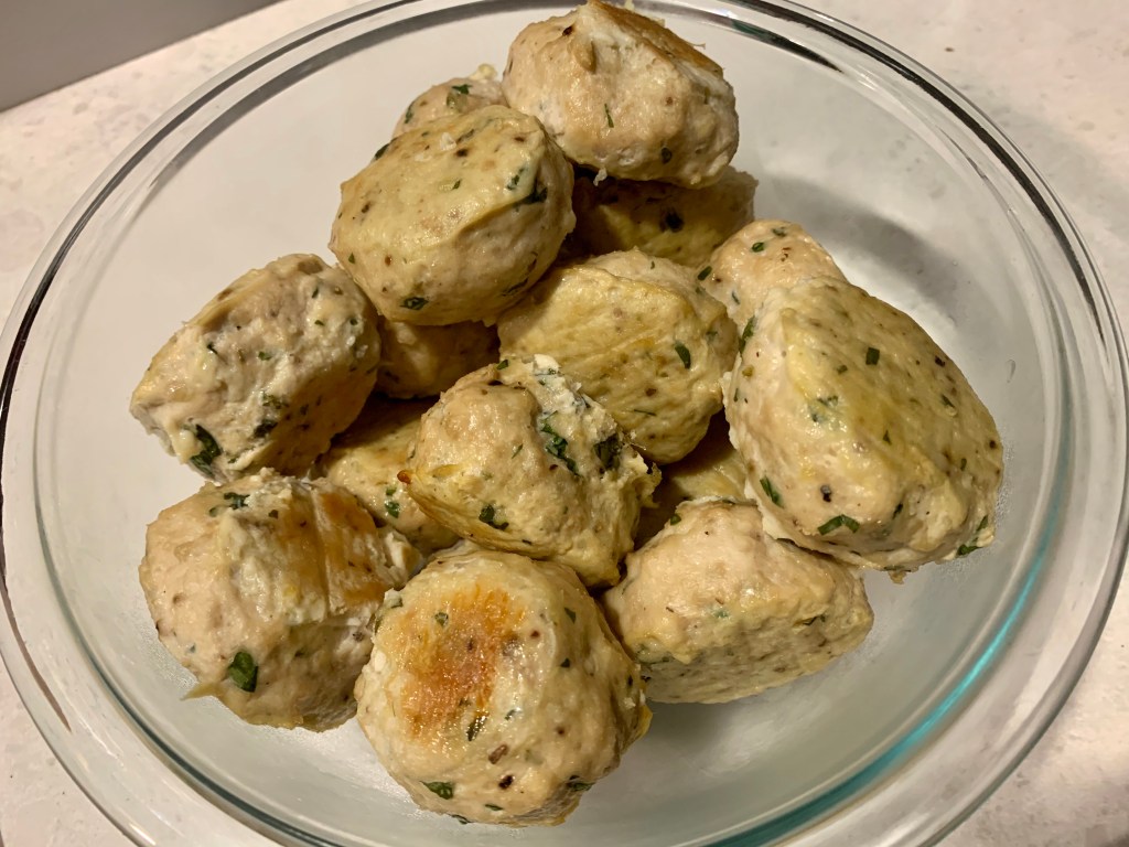 Spoon mixture into your hands and form 16 golf-ball sized meatballs and place them on the baking sheet.