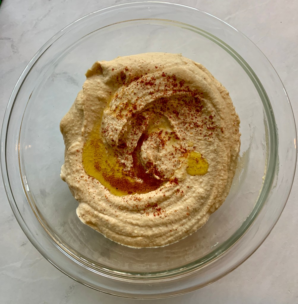 Add the cumin and garbanzo beans to the food processor. While blending, drizzle in the olive oil. Blend until the mixture is super smooth, scraping down the sides of the processor as necessary, about 2 minutes. Add ice water by the tablespoon if necessary to achieve a super creamy texture.