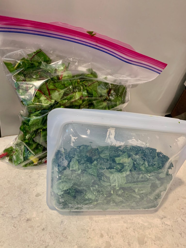 This week I got A LOT of chard, kale, and beets (seasonal)… the best thing you can do it wash and prep it right away.