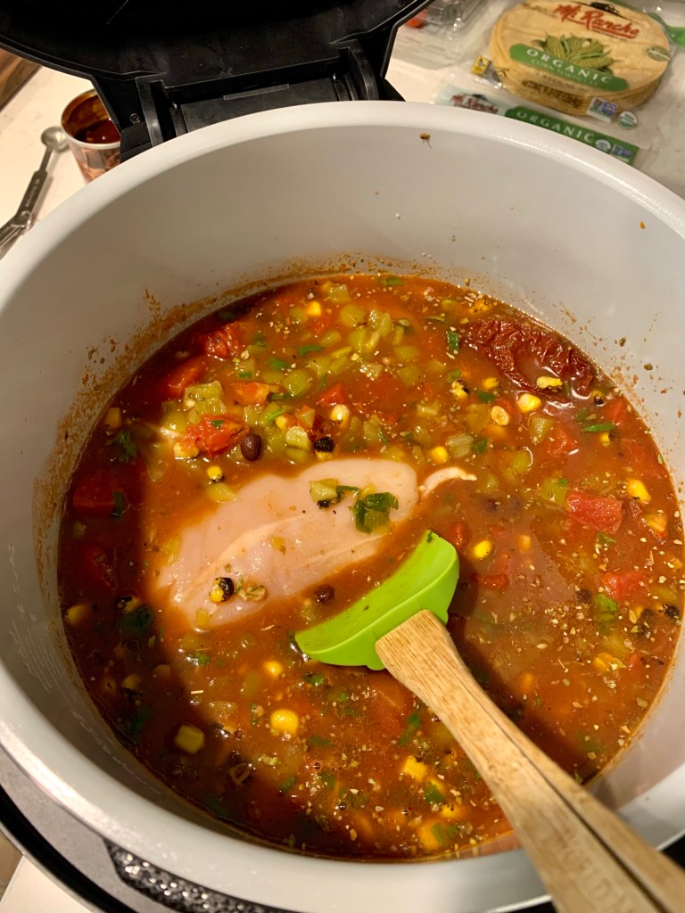 Add the drained beans, diced tomatoes, corn, cumin, oregano and stir. Add the chicken breasts; cover and cook on high pressure for 20 minutes. Quick or natural release.