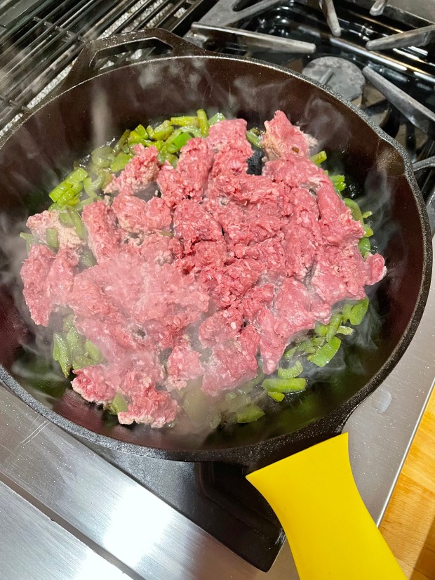 I use my cast iron pan for this one because i think it browns the meat a lot better, if you don’t have one they are usually pretty cheap at Costco or Amazon.