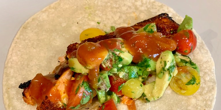 Heat a cast iron pan with a small amount of avocado oil. Warm the tortillas (1 minute each side, or until cooked to desired liking).